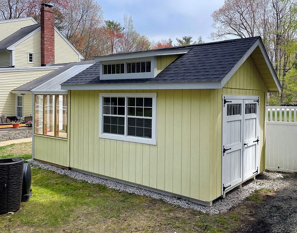 Chris and Coleen of Hanover, MA are passionate gardeners ready to elevate their hobby with a purpose-built structure designed for year-round growing. Their vision: a functional greenhouse for easy potting and extended growing seasons, paired with an attached storage shed for tools and equipment – all in one cohesive design. After visiting our Hanover Design Center, they collaborated with an Outdoor Personia design consultant to create a Custom 10×20 Shed Greenhouse Combo that seamlessly blends form and function.