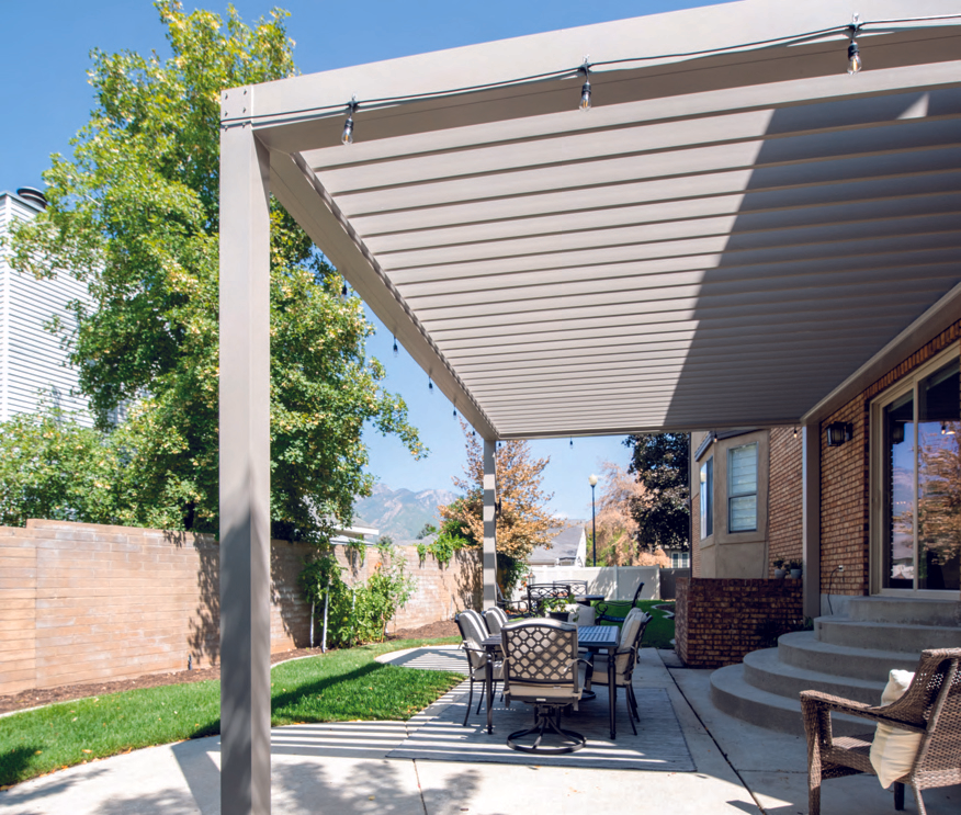 Louvered pergolas offer adjustable shade control and give you the power to manually control sunlight and shade instantly. Whether you want to enjoy the sun’s warmth or enjoy a cool, shaded retreat, it’s all possible with adjustable louvers. When closed, the louvers form a solid roof, providing shelter from rain, snow, and strong winds, allowing you to enjoy your backyard all year round. Made from weather-resistant vinyl or aluminum, these pergolas come in a variety of colors and feature options like built-in gutters for water drainage, LED lighting, gutter screens, and even a misting system. We offer various custom designs to match your home’s personal style, enhancing your backyard living space!