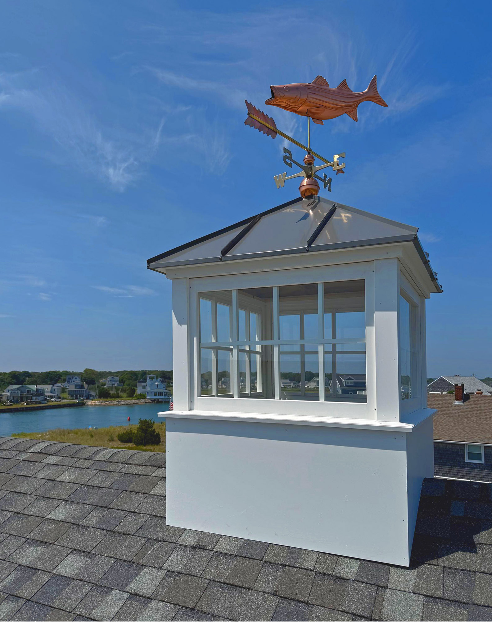 Ryan loves how his new cupola and weathervane complement the appeal of his summer home. He now wants us to add a similar cupola to the roof of his primary residence.